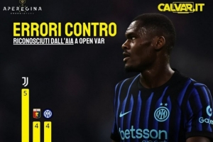 本赛季意甲出现VAR不利判罚次数榜:尤文5次居首,国米4次第二
