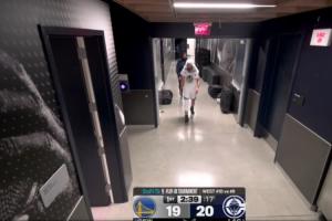 首节还剩2分多钟时,勇士球星斯蒂芬·库里走回更衣室,没有队医陪同。