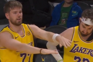 攒劲的节目!湖人主场观众席惊现山寨版东契奇&蒂米 假东子秀热舞